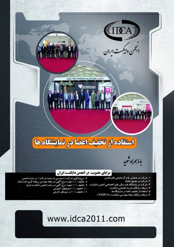 انجمن ریخته گری تحت فشار (دایکست) ایران از شما برای عضویت در انجمن و شرکت در همایش ها و نمایشگاه های تخصصی دعوت به عمل میاورد.
